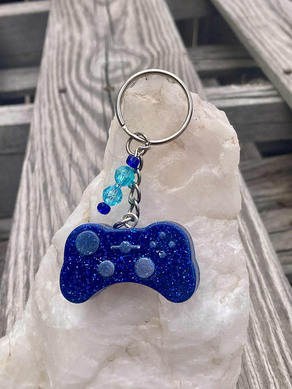Blue Glitter Game Controller Keychain – Handmade Resin Gamer Gift
