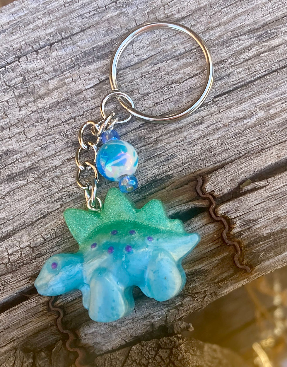 Green & Blue Stegosaurus Resin Keychain (Purple Spot Accents)